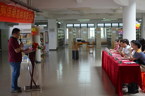 大会第五项,图书馆谢曼馆长总结发言。谢馆长在发言中感谢法公系捐赠的书籍和,表达了对此次世界读书日系列活动所取得的成效的认可,并希望通过此次活动引导大家走出宿舍,走进图书馆。