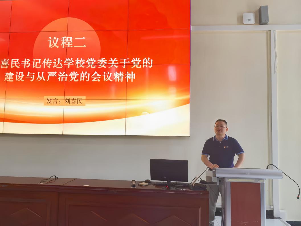 会议传达了学校党委关于党的建设与全面从严治党会议精神,要求全体党员统一思想认识,把全面从严治党作为 “必修课”,以自我革命精神加强党性修养,主动对标学校发展战略,在教学科研、社会服务中彰显党员担当。