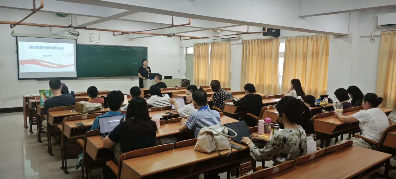 2025年9月19日下午,博雅教育学院在天河校区604召开9月第二次全院职工大会。党总支书记刘喜民、学院副院长张弋及全体教职工参加会议。