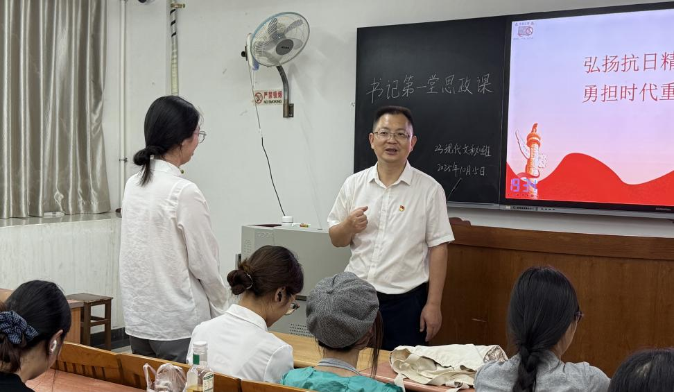结合不同班级专业特点,授课领导为学生明确了精神传承的实践方向。针对23文秘班的专业属性,刘喜民书记提出三点具体要求:一是夯实文书写作等核心课程基础,以严谨态度锤炼服务社会的硬本领;二是主动学习党史国史,厚植爱国情怀,将个人理想融入国家发展大局;三是秉持“文以载道、服务为民”理念,未来在平凡岗位上践行青年责任。张弋院长鼓励23行政1班学生以先烈为榜样,从抗战精神中汲取奋进力量,踏实学习、砥砺前行,成长为有理想、敢担当、能作为的雅慧少年,为民族复兴贡献青春智慧。