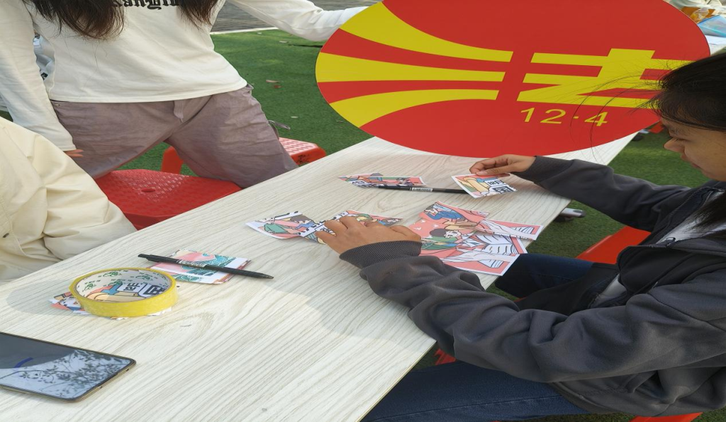 与此同时,在学校体育馆的宪法日游园活动吸引了众多师生参与。活动设置五个特色区域:宪圈定知﹒问答闯关、宪连权债﹒配对挑战、宪忆时光﹒拼图挑战、宪绘初心﹒毛球创作、活动宣传栏签名留念。