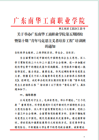 关于举办广东南华工商职业学院第五期团校暨第十期“青年马克思主义者培养工程” 培训班的通知