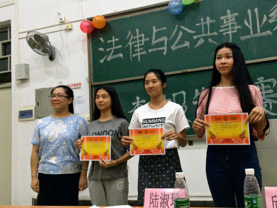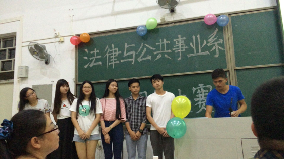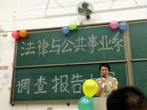 2016年6月30日星期四晚,在清远校区教学楼101举办了法律与公共事业系首届调查报告决赛。担任本次大赛的评委有:刘志栋教授、陆淑珍副教授、刘亚玲老师、邱伟波老师,以及法律与公共事业系14级学长代表。