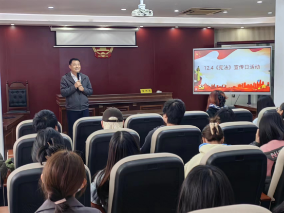 12月1日,我院组织学生到清远广信君达律所参与实践活动。在活动中,学生们参观律师事务所,了解律师事务所的工作环境、设施和组织结构等,帮助他们直观地了解律师事务所的运作模式和日常工作内容。邀请两位经验丰富的律师为学生们进行讲座。一位律师讲解《为什么要选择做律师》,另一位律师介绍《律师执业之路》,将介绍个人经验、律师事务所的工作内容、律师的职责和工作流程等方面的知识,并分享一些实际案例,让学生们更加深入地了解律师的日常工作。同时,结合12.4《宪法》宣传日,律师开展《宪法》讲座,增强学生的法治认识和体验,践行全面依法治国新战略,推动全面依法治国不断开创新局面。