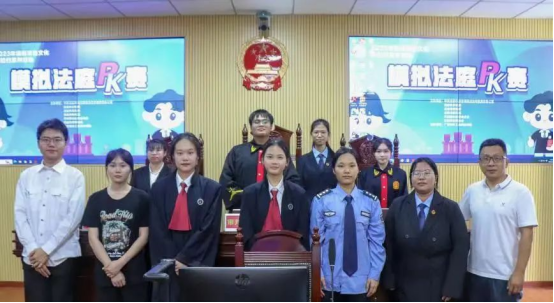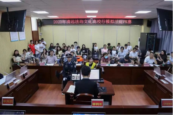 2023年5月,由中共清远市委全面依法治市委员会办公室、清远市公安局、清远市司法局、清远市教育局、共青团清远市委员会联合主办,省职教城(清远)校地共青团联盟、清远市律师协会协办,模拟法庭PK赛在我校举行,本次比赛旨在通过案例式、情景式、现场式的法治教育方式,教育引导在校大学生尊法学法守法用法。我院提供场地,组织师生参与筹备和开展相关工作,学生还参与到竞赛中,我院队伍代表学校荣获此次比赛亚军。充分展现了我院法律事务专业同学扎实的专业基础和实务操作能力,通过产教融合的方式,进一步增强了我院学生的语言表达能力、临场应变能力和团结协作能力,提高学生的法律逻辑能力、法治素养和社会治理法治水平。