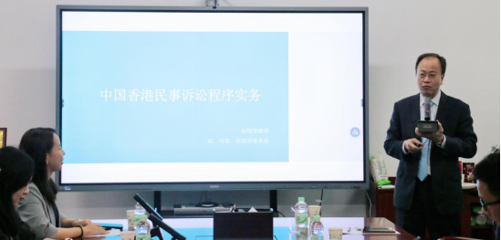 香港赵▪司徒▪郑律师事务所成立于 2000 年,位于我国香港中环德辅道中 71号永安集团大厦四楼、六楼,总办公面积 1 万平方英尺。律师事务所成立之后,乘香港回归之盛、祖国眷顾之恩,努力拓展香港和内地法律领域,背靠祖国,扎根香港。近年,国家推行“一带一路”倡议,香港赵▪司徒▪郑律师事务所积极配合,与内地和香港的客户一起开拓“一带一路”的庞大商机,与全国其他司法单位、高校合作,培养人才、发展事业、追寻理想。香港赵▪司徒▪郑律师事务所主任、高级合伙人赵国荣大律师作为上海市杨浦区政协委员、上海海外联谊会副会长、广东省律师协会粤港澳大湾区工作委员会委员、香港基本法教育委员会委员、香港法学交流基金会顾问,一直致力于祖国法律人才的培养、重视产教融合效能。自 2023 年 8 月促成香港律师事务所与我校签署产教融合、人才培养协议后,赵大律师非常重视学生实践技能的训练,在合作基地揭牌仪式后为学生们开展了题为《中国香港民事诉讼程序实务》的讲座,向学生们讲解我国香港地区民事诉讼的司法程序。