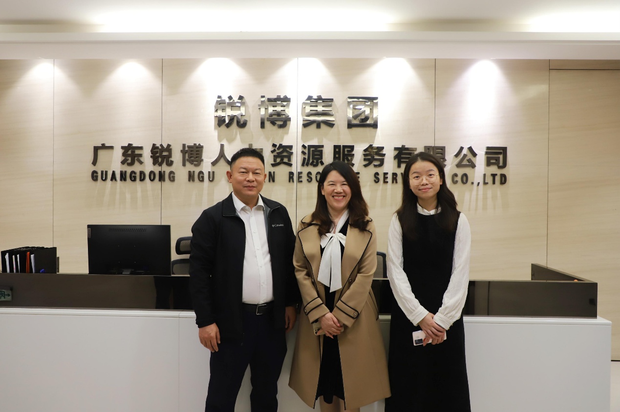 锐博集团广东公司总经理孙续华对刘爱玲副院长的到访表示热烈欢迎。座谈会上,孙总对集团的发展历程、业务范围和人才需求等方面情况进行了详细介绍,对企业首创的智能设备+人力资源的业务服务外包模式,助力生产制造业高质量发展进行了探讨。锐博集团创立于2002年,是国内名列前茅的人力资源服务公司,同时也是武汉大学校友企业,经过二十多年的发展已经与3000多家企业建立合作关系,全国子公司220多家。作为高新技术企业,同时成为广东省人力资源管理协会副会长单位、广州市人力资源服务协会理事单位、海南省企业家联合会常务理事单位等多个行业会员单位,深受行业认可。