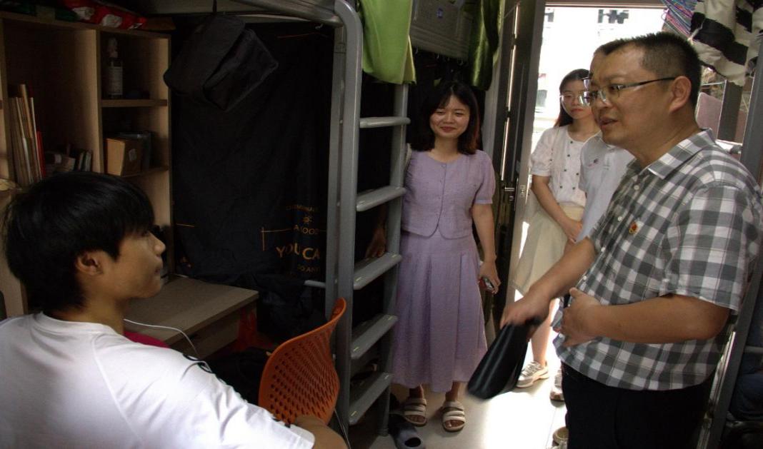 新学期开学,为深入了解学生的生活和学习,进一步强化宿舍管理,积极营造和谐的生活环境及浓厚的学习氛围。2024年9月2日下午17时,学院党支部书记刘喜民携同全体辅导员、22级班主任段孝强老师、23级班主任熊悦老师走访学生宿舍。