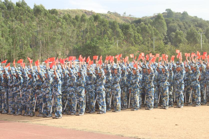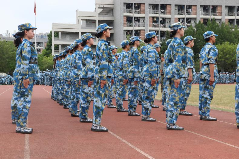 烈日下的绿茵操场和赤红跑道见证了参与者坚毅的足迹。军训汇演中,全员迷彩彰显英姿飒爽,少年眼中充满燃烧的斗志。最终,同学们团结一致,圆满完成任务。