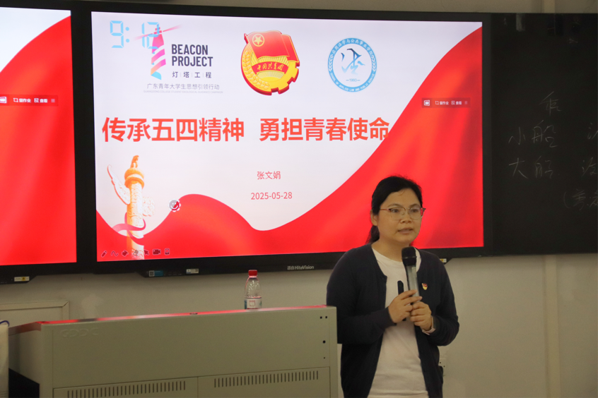张文娟老师则以历史逻辑与时代价值的辩证统一为方法论,对“五四精神”的四维内核进行系统阐释。她结合习近平总书记对新时代中国青年的殷切嘱托,深刻诠释了“一代人有一代人的使命”这一论断的当代意涵。张老师鼓励青年学子在中华民族伟大复兴的征程中锚定“三个坐标”(政治坐标、历史坐标、时代坐标),勇担时代赋予的重任。