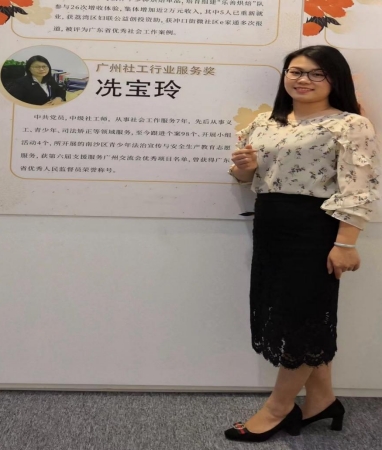 冼宝玲2009级(2012届)社会工作专业毕业生,广东省人民监督员;广州市南沙区本善社会工作服务中心荣誉总干事;广州市南沙区志愿者协会专家库成员;广州市南沙区“社区矫正志愿讲师团”成员;广州市南沙区人民检察院 首届听证员;2022 年“伙伴同行”粤东西北地区青少年社区矫正帮扶项目督导;曾多次担任广州市、佛山市、清远市、肇庆市等多地青少年项目培训导师及督导。