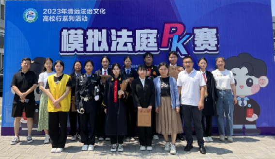 1.2023年5月法律事务专业学生蔡景炫等10名同学参加2023年清远法治文化高校行系列活动模拟法庭PK赛荣获第二名。