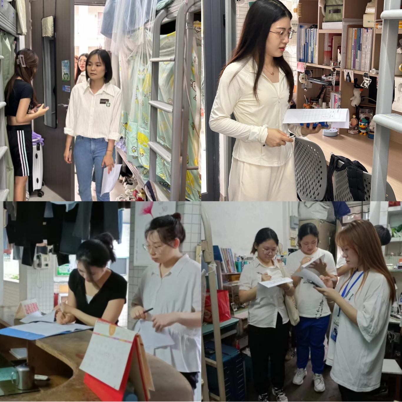 本次宿舍评比由辅导员和学生会学生代表作为评委,打分过程中,各位评委针对各宿舍的卫生状况、衣物叠放、用电安全、宿舍文化氛围等方面进行细致检查并评分。