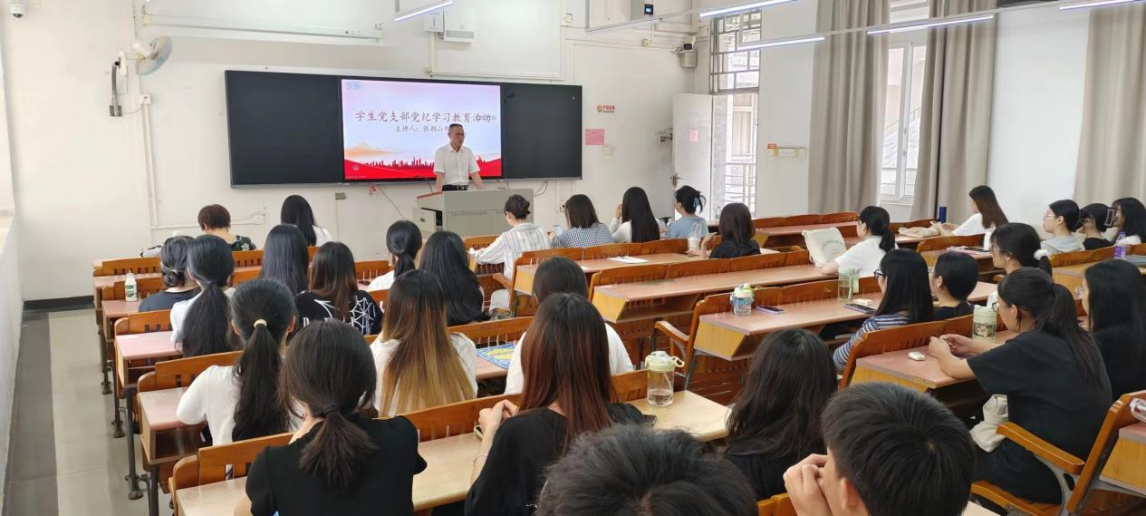 5月29日,财务金融学院党支部书记张朝山为学生党支部全体教师、学生入党积极分子讲授党纪学习教育专题党课。