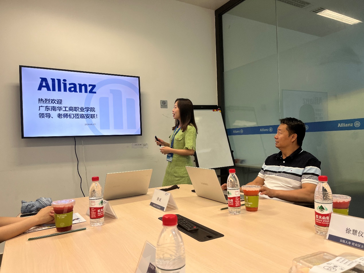 座谈上,中德安联广东分公司业务经理徐慧仪对广东南华工商职业学院教师的到访表示热烈欢迎,对安联集团的发展历史以及中德安联在大湾区的业务开展情况做了详细介绍。