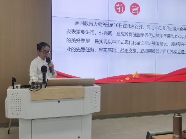 会议伊始,胡娟传达了2024年全国教育大会的会议精神,她在发言中表述了将思想政治教育贯穿于整个教育教学过程中的重要性,提倡利用新媒体平台来正面引导学生,稳步实现德智体美劳全面发展的人才培养目标,并提出建立名师工作室、专升本辅导自习室等措施,进一步促进师生间的互动交流,强化以学生为中心的教育理念。