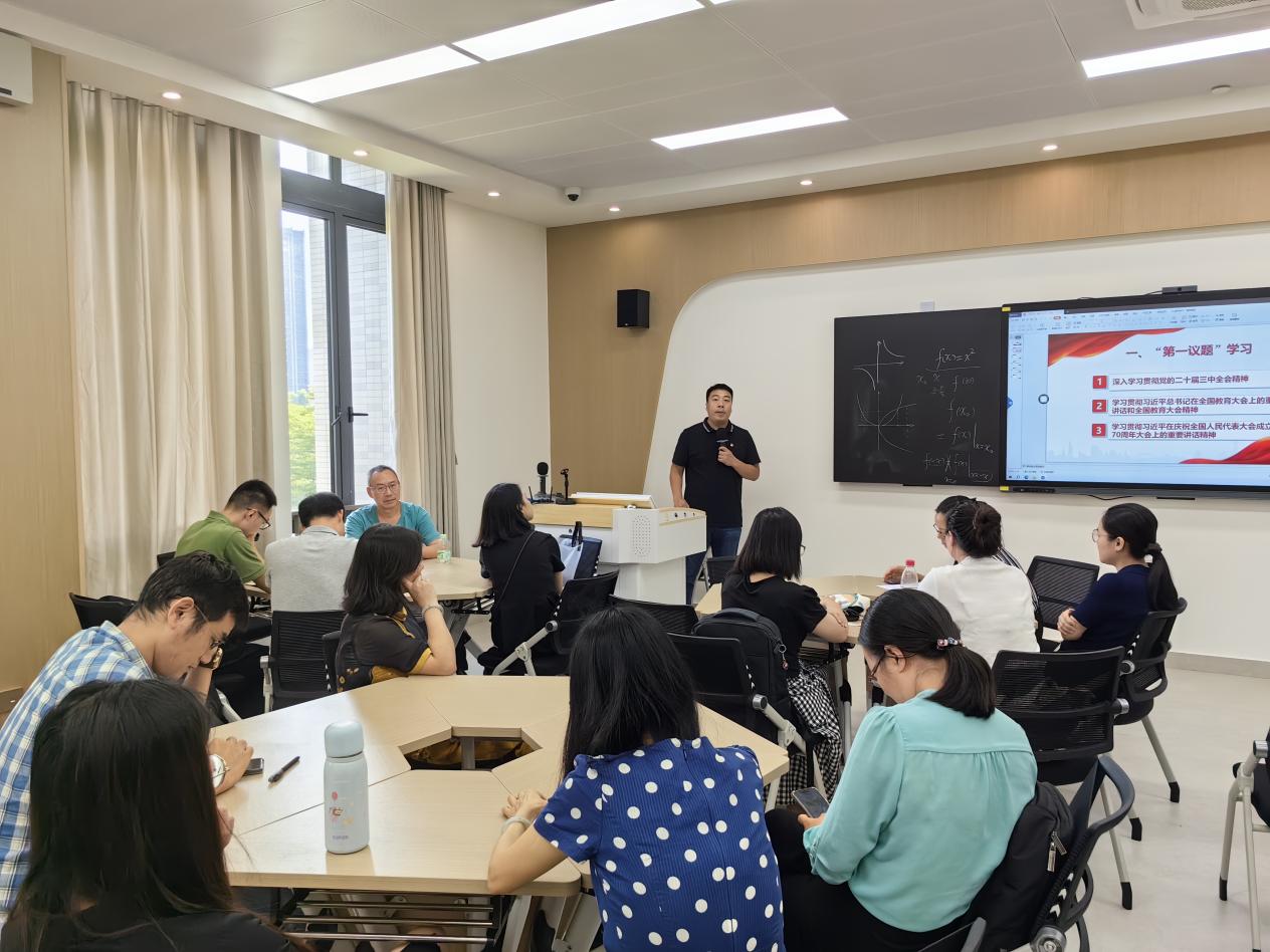 2024年9月20日,财务金融学院教师党支部在清远校区开展专题学习会议暨主题党日活动,旨在深入学习贯彻党的二十届三中全会精神,学习领会习近平总书记在全国教育大会上的重要讲话精神,以及庆祝全国人民代表大会成立70周年大会上的重要讲话精神。本次会议对党员教师坚定理想信念、明确奋斗方向具有重要意义。