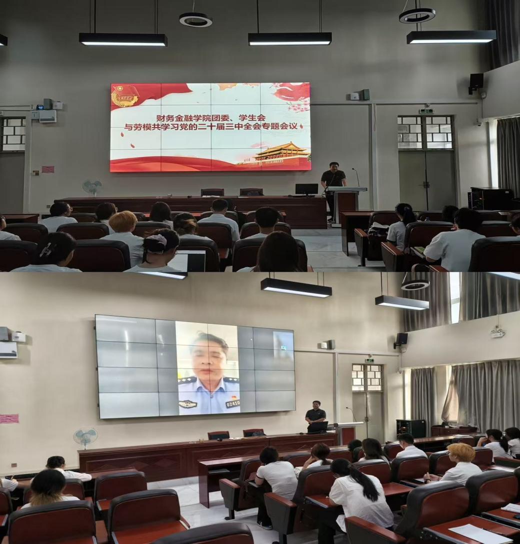 9月19日,财务金融学院团委邀请劳模冯荣炜,在清远校区教学楼101教室宣讲党的二十届三中全会精神。财金学院团委书记杨力铖主持宣讲会,23级团学干部参加。