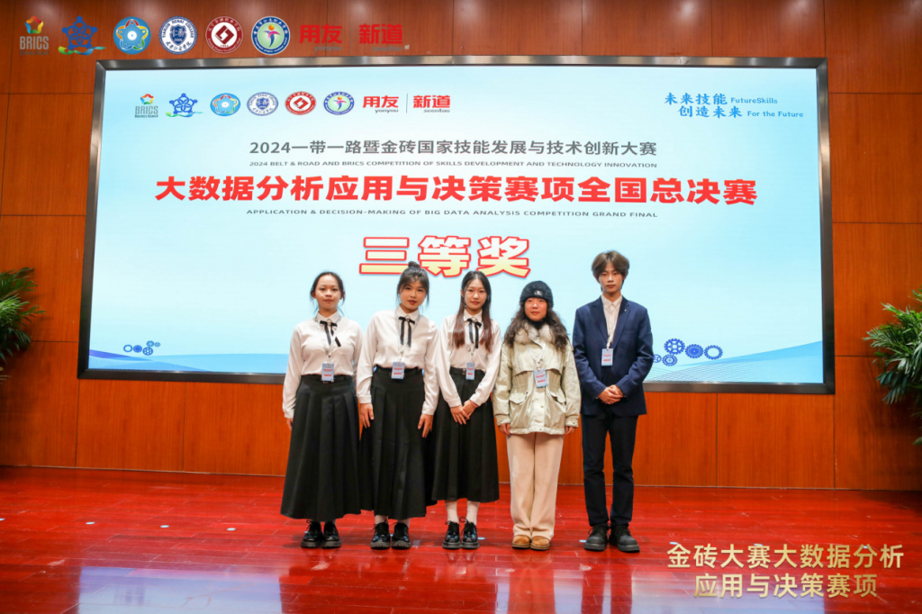 11月8日至11日,2024年一带一路暨金砖国家技能发展与技术创新大赛大数据分析应用与决策赛项金融大数据赛道全国总决赛(高职组)在辽宁金融职业学院举行。财务金融学院指导老师杨梦媛、陈继辉,学生黄毓人、陈少燕、沈嘉仪和李慧婷共六人组成参赛队伍参赛并获三等奖,实现了学院在此项赛事参赛成果上的突破。