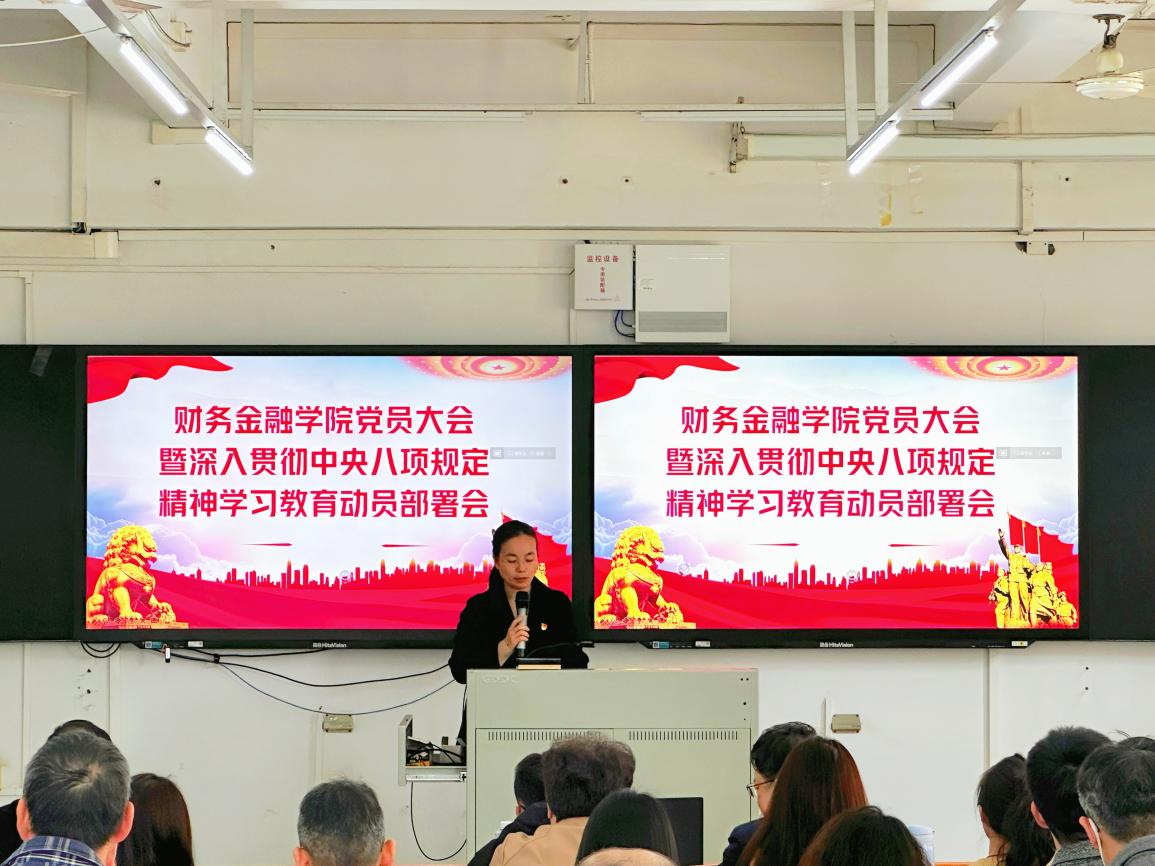 4月2日,财务金融学院党总支部召开深入贯彻中央八项规定精神学习教育动员部署会,传达学习中共中央办公厅《关于在全党开展深入贯彻中央八项规定精神学习教育的通知》精神,并集中学习《习近平关于加强党的作风建设论述摘编》。学院党总支部书记胡娟作动员讲话,全体教师党员参会。