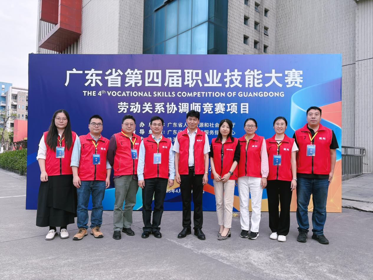 2025年4月17日至19日,广东省第四届职业技能大赛劳动关系协调师项目竞赛在中山市技师学院北校区圆满举办,经选拔,来自全省21个地市中的16位选手进入最后的决赛。我院范劲鸿老师凭借其丰富的劳动关系协调和仲裁经验,作为省属院校代表受邀参与裁判工作。