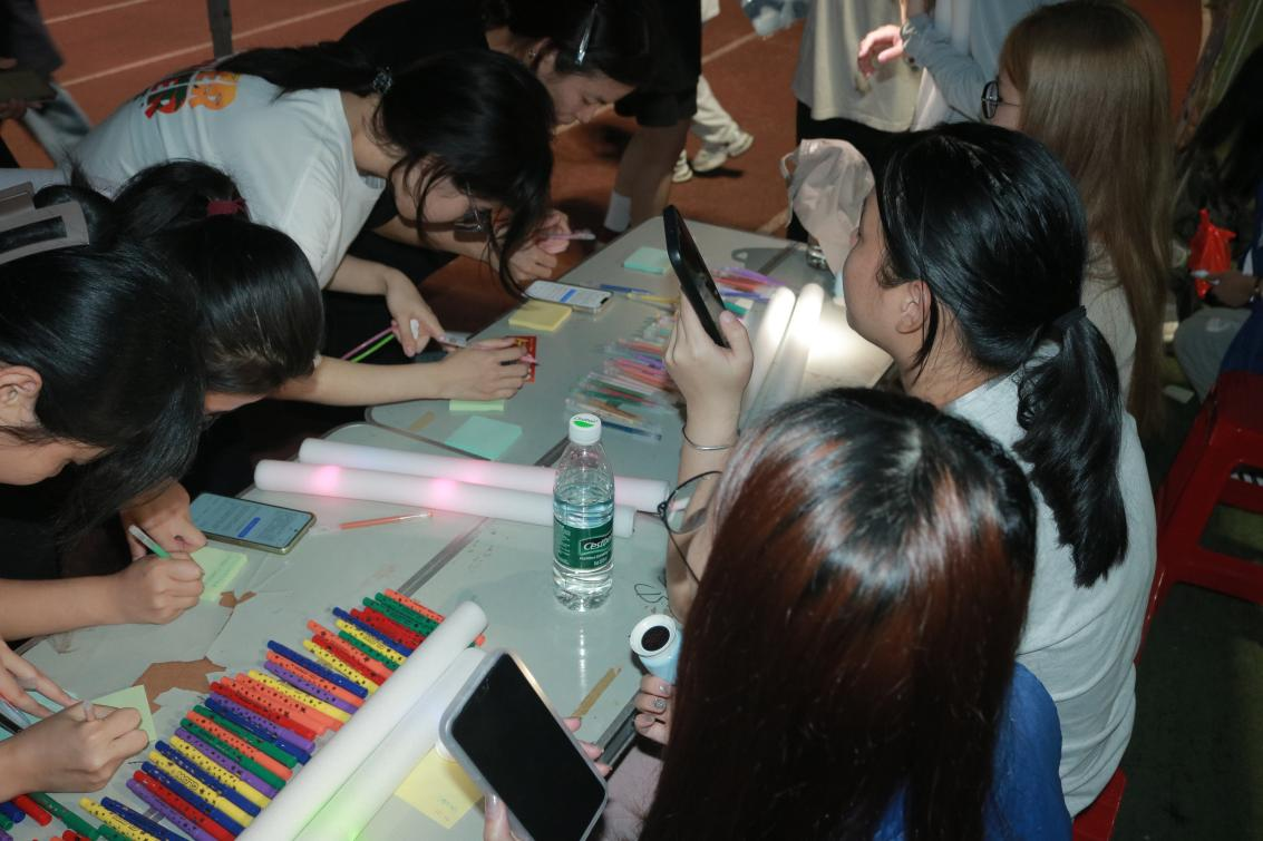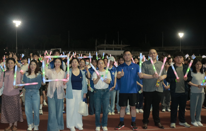 活动当晚,师生们早早来到操场集合,在工作人员的组织下领取了荧光棒和号码牌,佩戴好装备,在起点处认真热身,为即将开始的跑步做足准备。