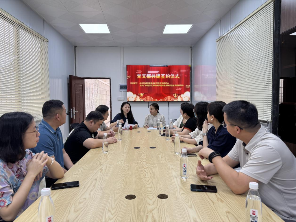 2025 年5月14日,财务金融学院党总支与清远市凤城街道凤宇社区党总支开展党建结对共建座谈会,携手深化党组织优势互补,以党建引领助推业务发展,进一步深化 “高校 + 社区” 合作共建模式,加强校社资源融合共享,推进 “高校智力” 与 “社区治理” 创新。凤宇社区党总支书记李莹、财务金融学院党总支书记胡娟以及学院学生党支部全体教师党员出席座谈会。