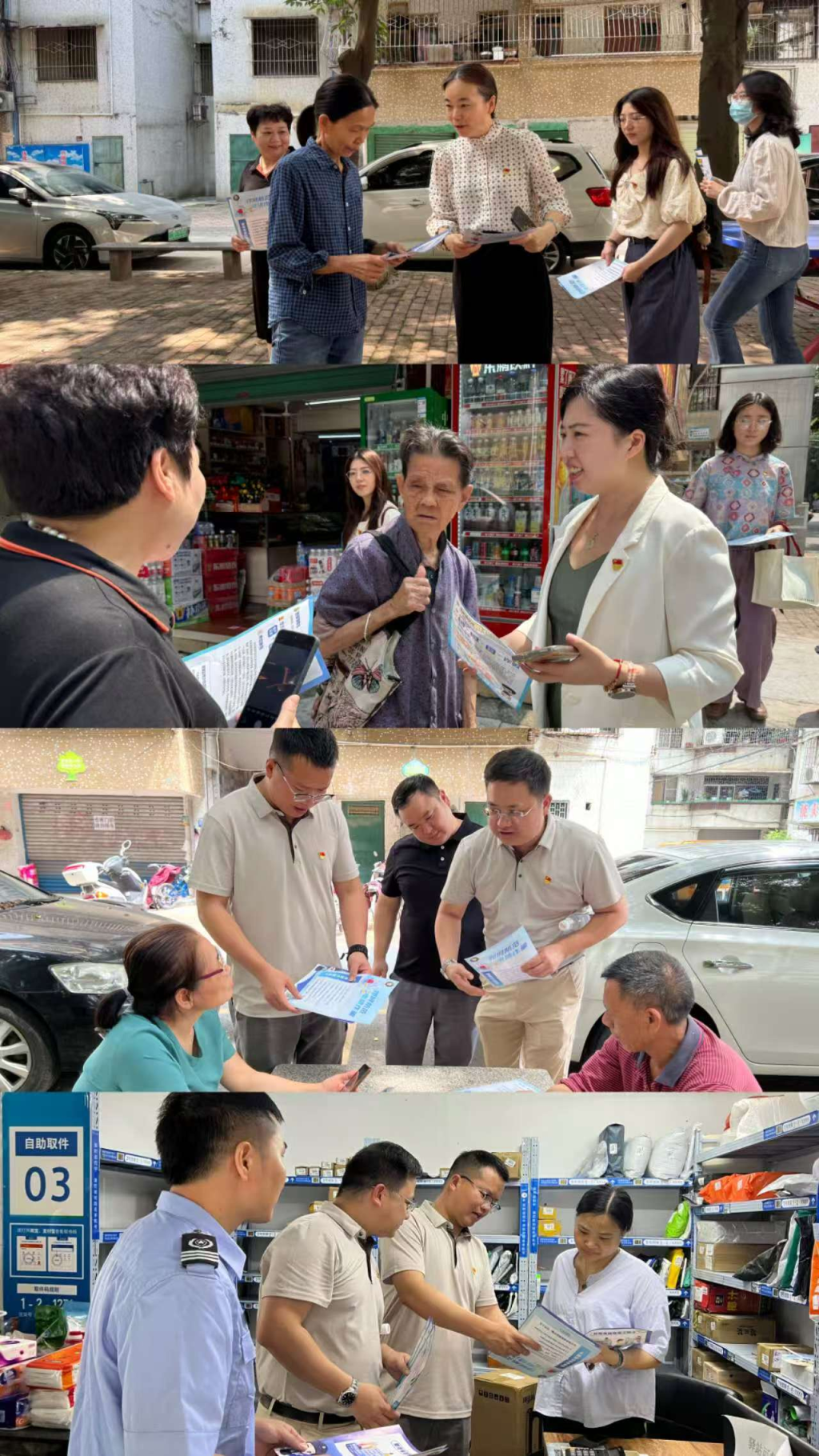 图3:党员们发放预防电信诈骗传单