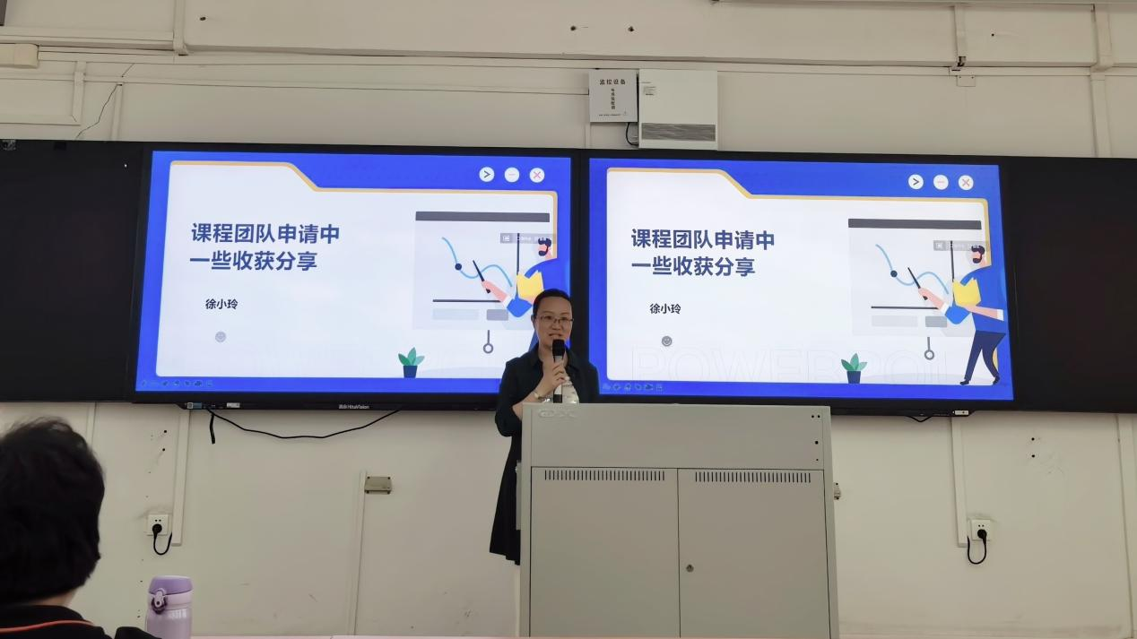 课程团队负责人徐小玲以《课程团队申请中的一些收获分享》为题,系统分享了课程团队建设的实践经验。她详细回顾了课程团队从组建到立项的全过程,包括团队组建初期的反复沟通协调、课程内容的多次筛选优化、课程申报中的反复打磨,并总结了课程建设需要遵循的步骤,包括定人定课、明确建设思路、突出特色与亮点以及量化业绩成果等。她提到在团队在组建过程中面临诸多挑战,如人数控制、课程内容的选择与调整等,经过多次讨论与思考,最终决定聚焦于一门核心课程。在三次汇报过程中,经过与其他教师、领导的多次沟通与协作,团队对建课原因、建设思路、特色与亮点以及建设目标等方面进行了调整和完善,围绕核心课程进行内容重构,并创新教学方法。她在个人体会中提到,课程团队建设不仅是教学工作的需要,更是教师专业成长的重要途径。通过团队协作与交流,教师们能够不断提升自身的教学能力和专业素养,为学生提供更优质的教育资源。