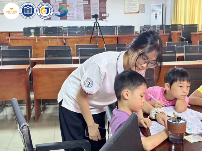 7月16日,金鹰筑梦队在良口镇米埗村党群服务中心开展了“以智慧心”支教活动。