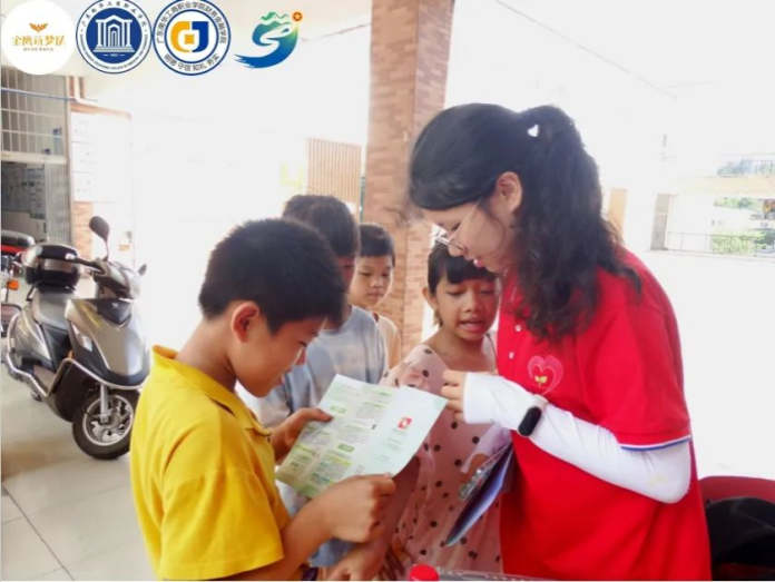 7月15日,金鹰筑梦队于米埗村党群服务中心开展非遗手工漆扇制作活动及帆布袋绘画活动。队员们双线并进,同时开展国家资助政策摆摊宣传活动。夜幕时分,队员们于良明村开展国家资助宣传讲座,向更多村民宣传推广国家资助政策。