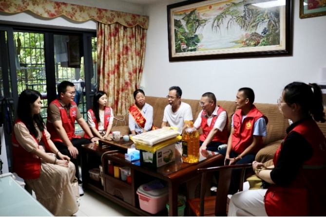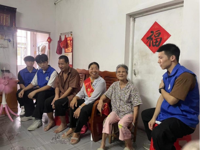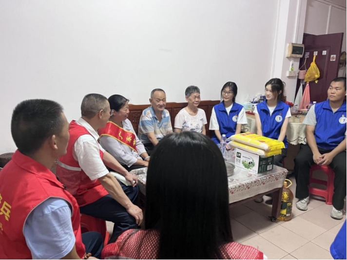 在随后的探访过程中,邱劳模及同学们为长者们送上花生油、大米、牛奶等暖心物资,并详细了解长者近期的生活和身体状况,与长者亲切交谈,叮嘱老人夏季到了要注意防暑,多注意身体,平时要注意用电用气安全,饮食要注意卫生。