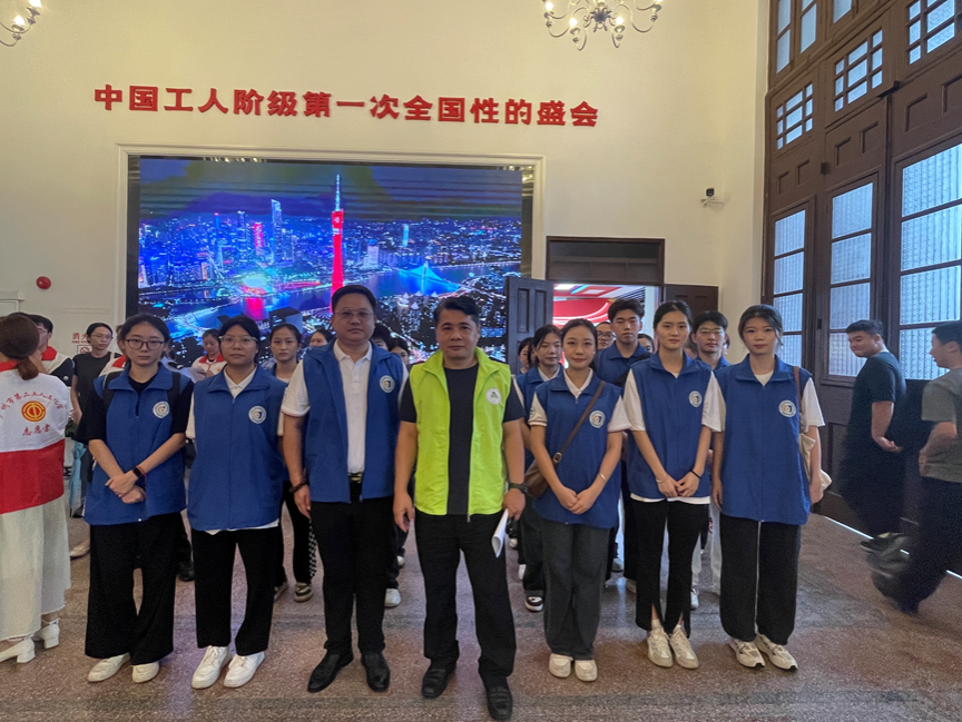 (我院劳模导师冯荣炜与杨力铖等志愿服务师生合影)