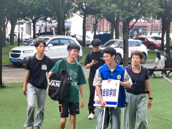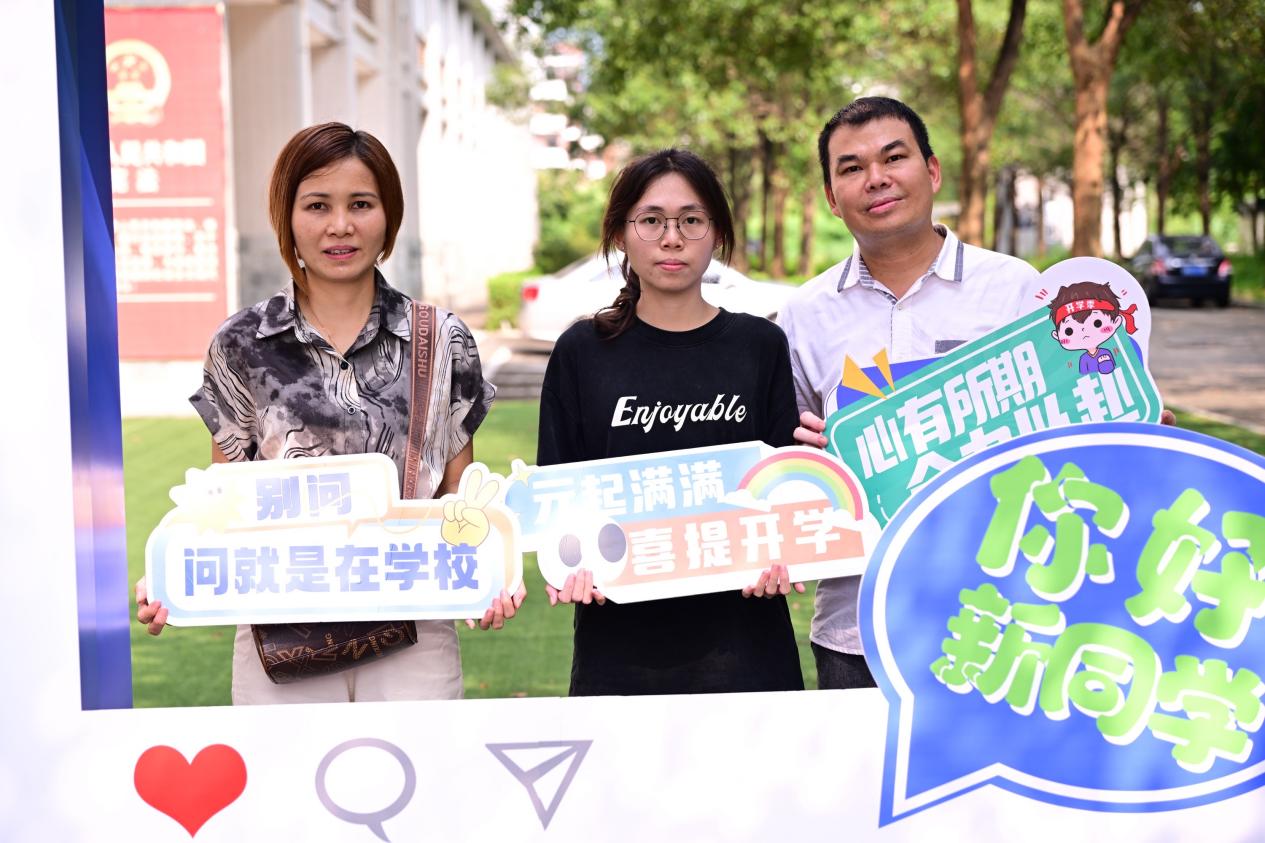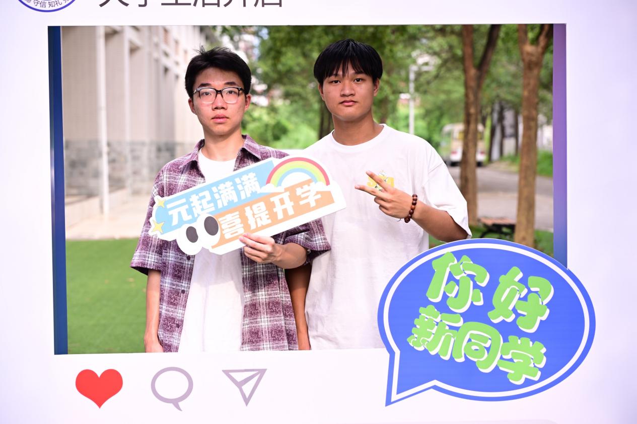 在架空层,每个班级都设有接待点,包括凉亭休息处、行李寄存处、签名拍照墙等设施。新生们可以在此稍作休息,整理行李,并与家人或新同学合影留念。此外,现场还提供了即时拍照服务,让新生们能够捕捉到这一珍贵时刻。在志愿者的有序引导下,迎新工作有条不紊地进行着。学院领导也亲临现场,与新生们亲切交流,合影留念,并为新生们讲解入学注意事项。他们的到来不仅为新生带来了关怀与温暖,也极大地鼓舞了志愿者们的士气。