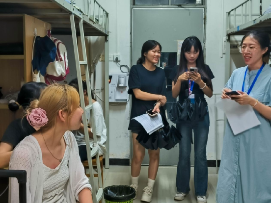 傍晚时分,财务金融学院副院长刘杰、党总支副书记胡娟带领全体辅导员及学生代表一行深入新生宿舍进行走访。他们与同学们亲切交流,了解学生的住宿情况和生活需求,并耐心解答他们的疑惑。老师们期望新生能够积极调整自身状态,与新同学和睦相处,更好地适应并融入大学生活。这次走访不仅为离家的新生带来了心灵上的慰藉,更赋予了他们在求学道路上坚定前行的信念与力量。