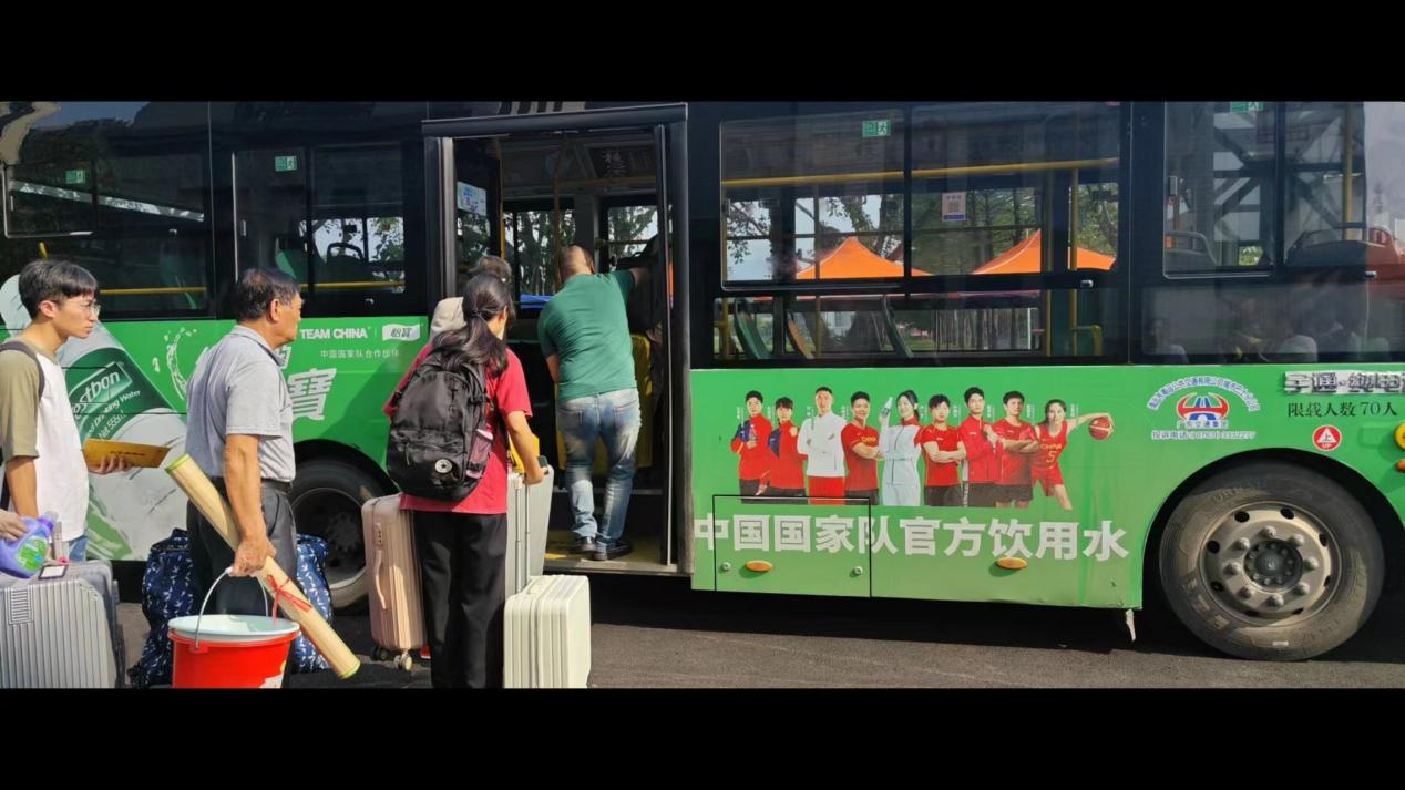 (校内的巴士来为学生拉行李)