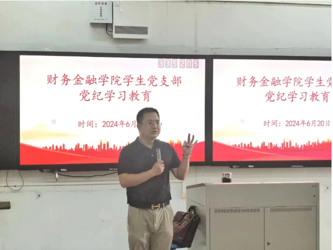 6月20日,财务金融学院学生党支部开展以“学纪、知纪、明纪、守纪”为主题的党纪学习教育专题党课。此次党课由财务金融学院学生党支部书记杨力铖主讲,22级入党积极分子参与。