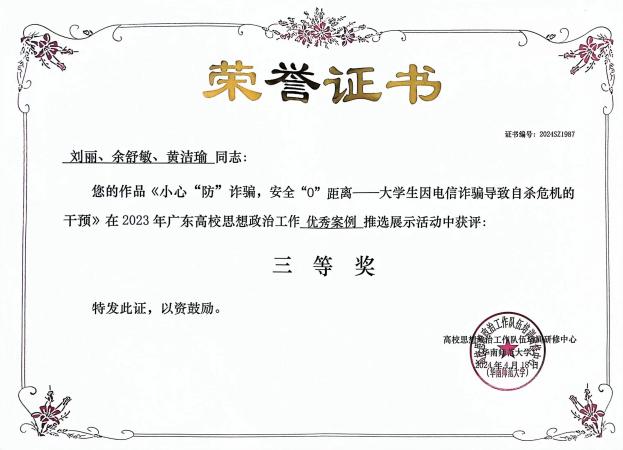 小心“防”诈骗,安全“0”距离——大学生因电信诈骗导致自杀危机的干预 |