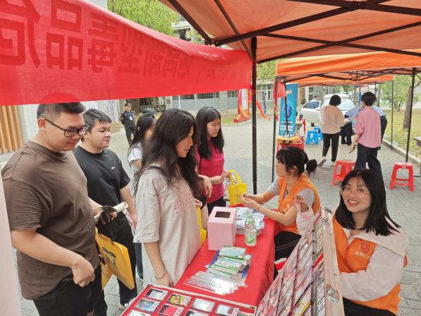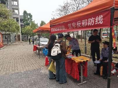 与此同时,宿舍楼下的摆摊宣传活动也在同步进行。活动现场设置了多个宣传摊位,分别围绕防诈骗知识、交通安全、禁毒知识、国家安全知识展开宣传。工作人员通过发放宣传手册、展示宣传展板、讲解真实案例等方式,向过往学生普及相关安全知识。为了提高学生的参与积极性,活动还准备了丰富的奖品,只要学生们参与知识问答、扫码关注反诈公众号等互动环节,就有机会获得精美礼品。学生们纷纷踊跃参与,在轻松愉快的氛围中学习到了实用的安全知识。