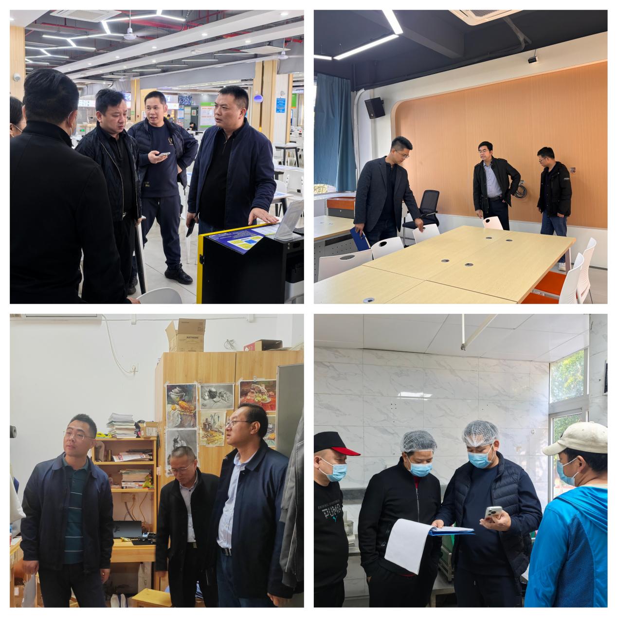 根据部署,检查组分为三组有序开展检查工作。学生处联合各二级学院,重点对学生宿舍的用电安全、消防设施配备、卫生及内务管理等情况进行细致排查,叮嘱学生增强安全防范意识,杜绝违规用电行为。总务处与保卫处组成的检查组,深入食堂、快递驿站、在建工地等场所,围绕食品安全、消防安全、设施设备运行、施工安全规范等方面展开检查,要求相关负责人严格落实安全管理制度,及时消除潜在风险。党政办、实训中心、信息中心及教务处共同对教学楼的教室、实验室、机房等区域进行检查,着重查看消防通道畅通情况、特种设备运行状态、网络信息安全保障措施等内容,确保教学场所安全稳定。