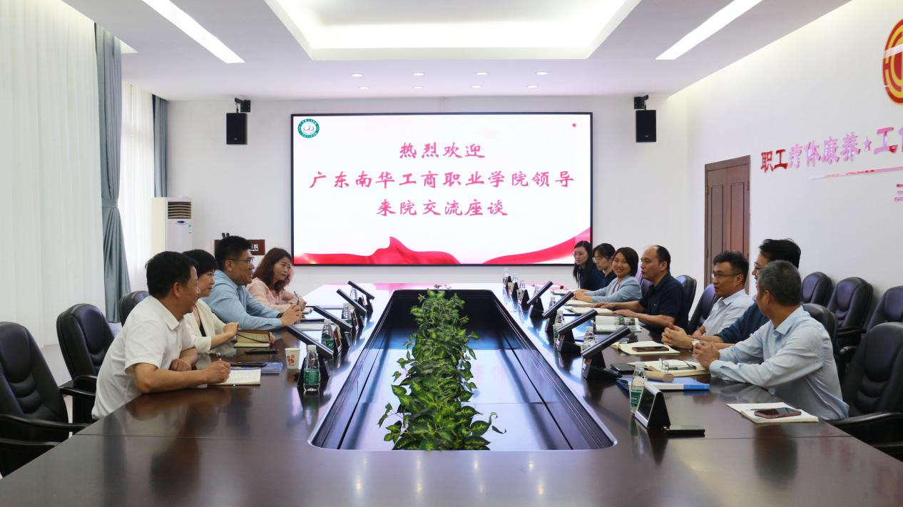 广东省工人医院党委副书记(负责全面工作)黄刚对林海一行来访表示欢迎,详细介绍了医院三大主责主业,医务科主任赵侠介绍了医院基本情况和未来发展规划,双方就进一步加强兄弟单位交流合作,从学校心理健康工作、学校医疗服务、职工疗休养等方面进行了深入探讨。林海在交流中围绕“工商协同、老幼结合、文旅融合”三大专业集群和三个服务面向,打造中国特色一流工会高职院校介绍了我校的办学定位及专业布局。他表示,南华与工人医院是“同根同源、同步发展”的兄弟单位,双方要加强交流,深化合作,共享资源,共谋发展。