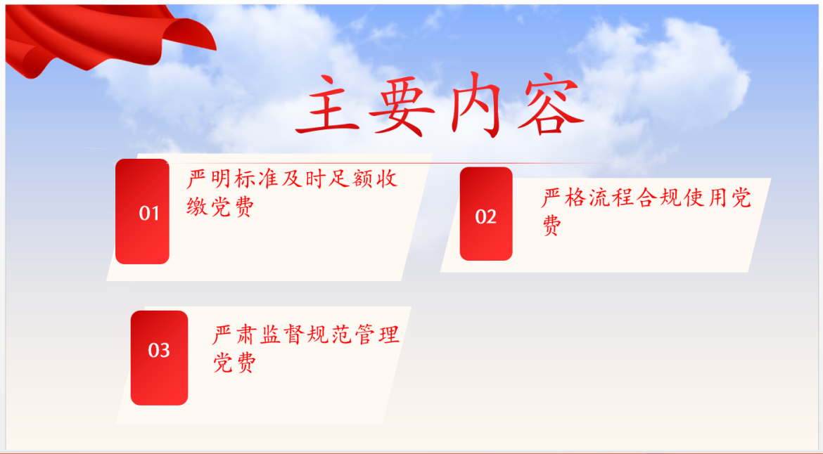 通过对党章党规的学习交流,全面系统学习了党费收缴使用和管理的相关规定,进一步明确了党费使用和管理要求、收缴标准和缴纳时间,使全体党员更加认识到及时足额缴纳党费,是党员对党组织应尽的义务,坚持将党费收缴、管理和使用作为加强党员教育管理、增强党员组织观念的一项长期性基础性工作,作为基层党建的重要内容,坚持把“严”的举措贯穿于党费工作的各环节、全流程,不断提高党费工作标准化、制度化水平,确保党费收缴有序、管理规范、使用合规。
