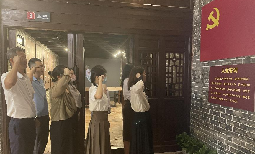 在工作人员的介绍下,支部全体党员先后参观了“革命先驱杨匏安”“红色据点杨家祠”“群英荟萃管东渠”三个展厅。活动中,全体党员面向党旗重温入党誓词。