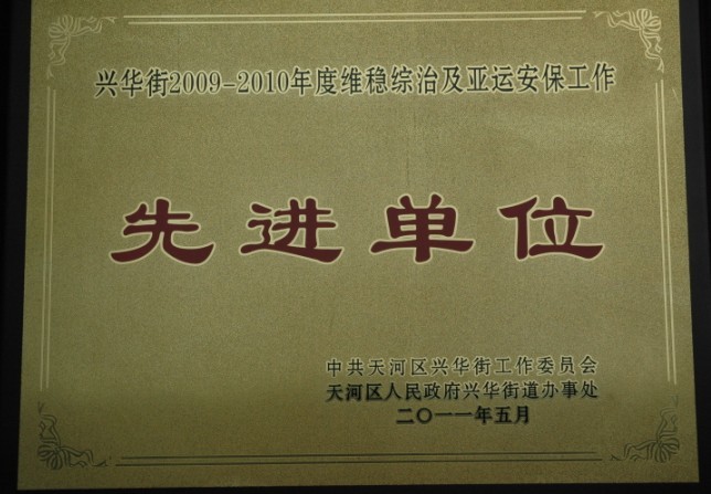 2011年5月27日下午3:00,兴华街2009—2010年社区建设工作总结表彰暨2011年创文等工作任务书下达会议在我院3号楼4楼大会议召开。会上,我院被天河区兴华街道办授予“兴华街2009—2010年度创建全国文明城市工作先进单位”和“兴华街2009—2010年度街维稳综治及亚运安保工作先进单位”。学院李河川书记、院办马红卫主任出席了表彰会并上台领奖。