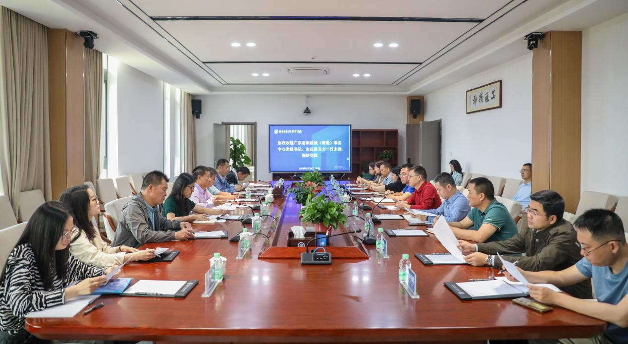 3月26日,广东省职教城(清远)事务中心党组书记、主任段习文一行到我校调研交流,学校党委副书记、副校长严新参加调研座谈。