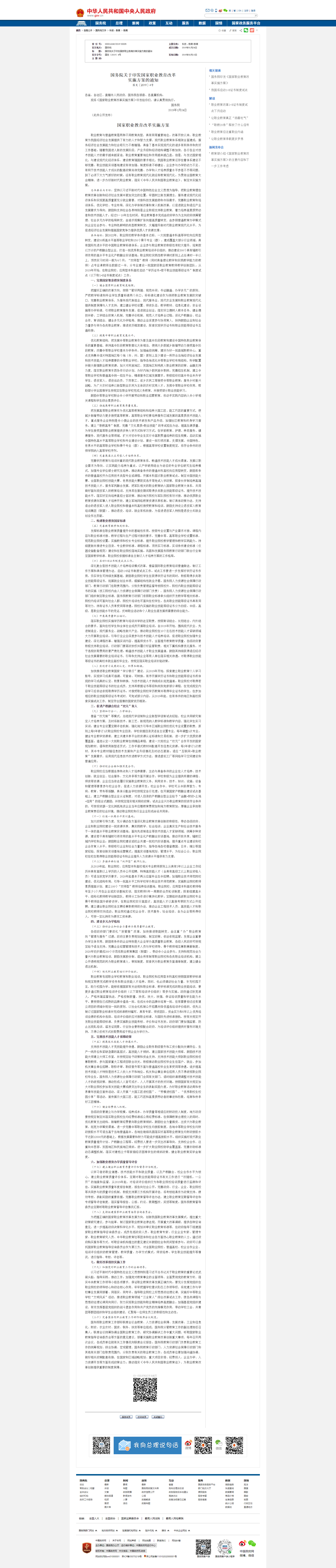 国务院关于印发国家职业教育改革实施方案的通知