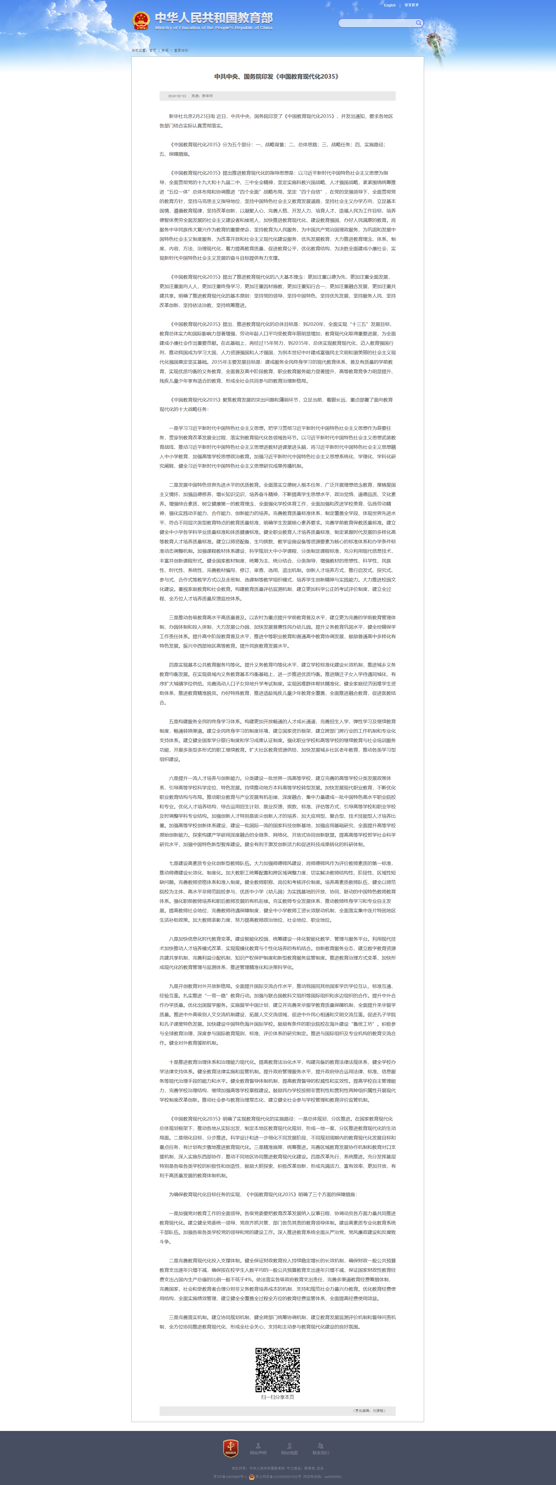 中共中央、国务院印发《中国教育现代化2035》