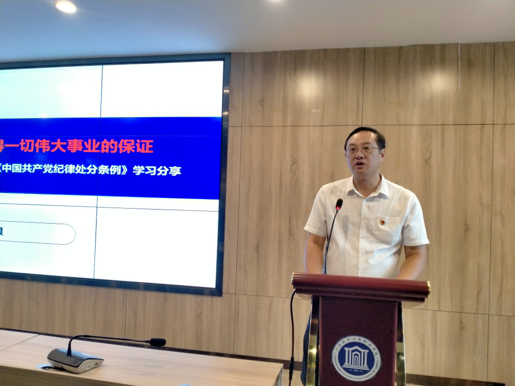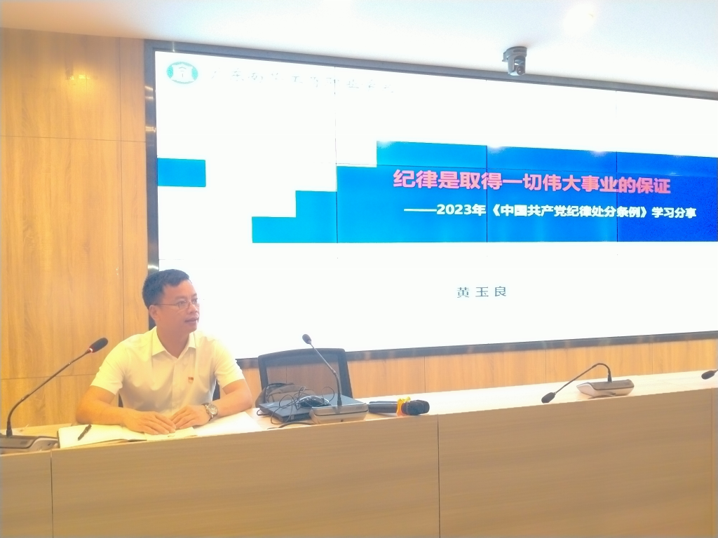 党委委员黄玉良带领两个支部全体党员共同学习《中国共产党纪律处分条例》,同时给联系的两个支部及所分管的全体党员、老师们讲《纪律是取得一切伟大事业的保证》党纪学习教育专题党课。黄玉良委员理论联系实际,分章分节结合工作体会剖析案例。他从中国共产党的初心使命、历史任务为切入点,深入浅出阐述加强党纪学习的重要意义,纪律是取得伟大胜利的保证,党纪学习就是一次自我革命等三个方面的内容。他要求工匠劳研、招生信息党支部全体党员干部,要忠实履职,紧密团结在学校党委周围,不断加强党的政治、组织、廉洁、群众、工作、生活纪律建设,全面推动党支部从严治党向纵深发展;要求两个支部要扎实开展党纪学习教育活动,讲政治,守规矩,强作风,严纪律,增强纪律意识、提高党员党性修养,做到学有所得、学有所悟、学有所用,真正把纪律规矩转化为政治自觉、思想自觉、行动自觉,从而实现效果转化,充分发挥战斗堡垒作用。