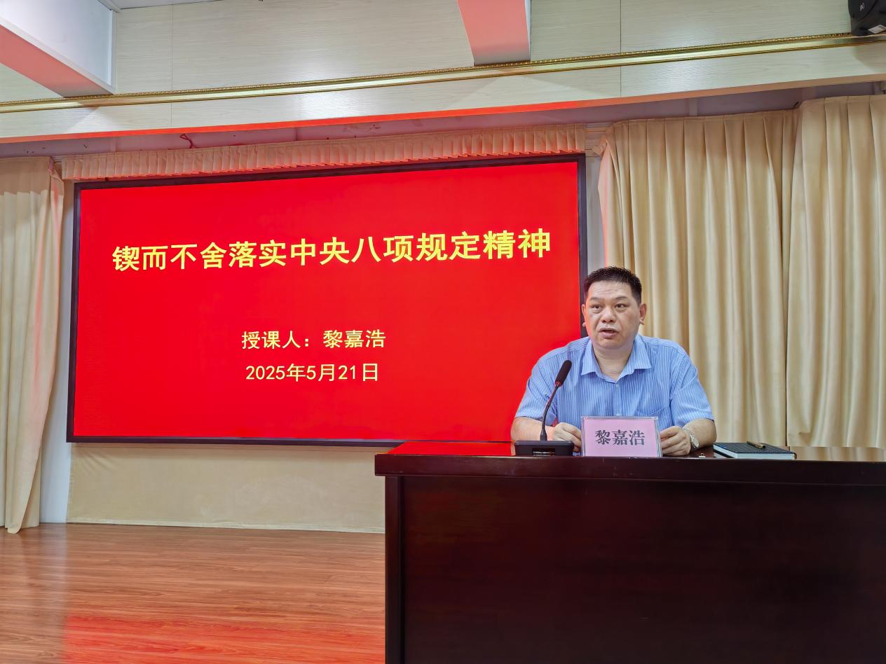 黎嘉浩在联学活动上开展“锲而不舍落实中央八项规定精神”主题党课,他从党中央决定在全党开展深入贯彻中央八项规定精神学习教育的背景、意义出发,结合实际案例,深入剖析了当前党的作风建设的形势。他认为,作为基层党组织,要充分认识开展这次学习教育的重要意义,切实抓好学习教育各项任务落地见效;作为一名党员干部,则要深刻把握好新时代作风建设规律,锲而不舍落实中央八项规定精神,以优良作风凝心聚力、干事创业。