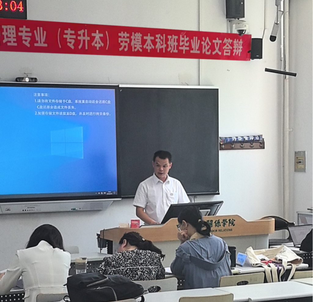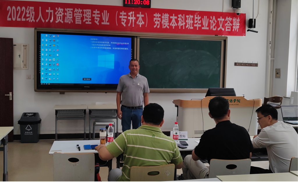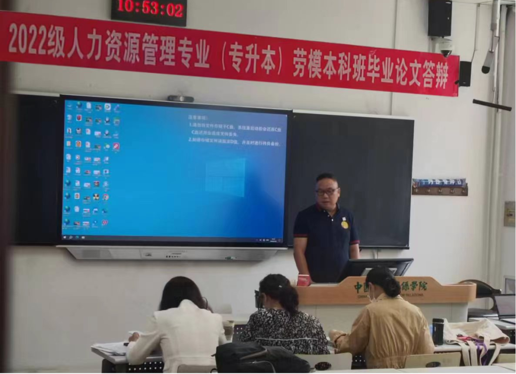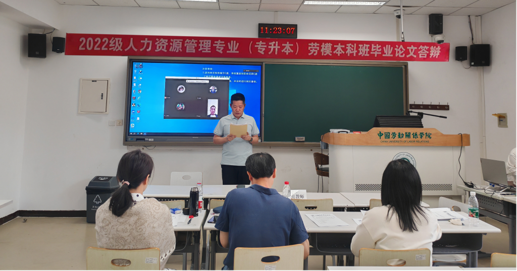5月18日上午,2021级广东省劳模工匠本科班中国劳动关系学院人力资源管理专业(专升本)学员参加北京本部校区参加毕业论文答辩。